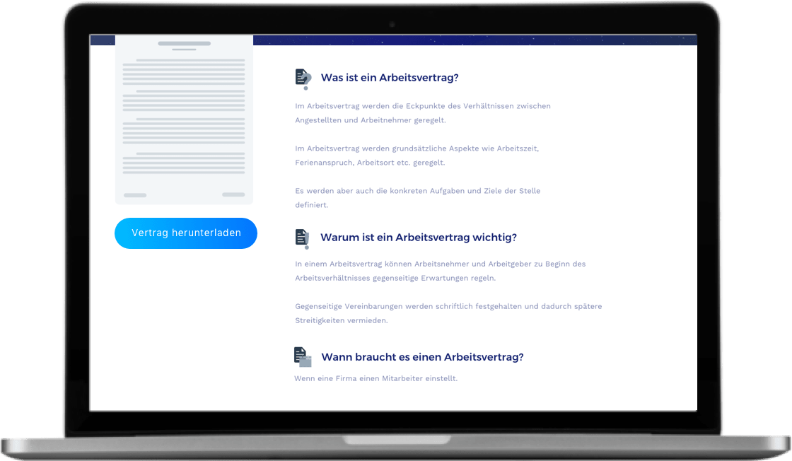Des modèles pour tous les contrats importants pour les PME et les start-ups regroupés sur un seul site - avec un conseil personnalisé